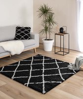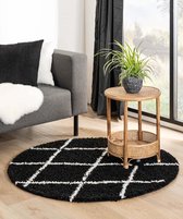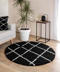 Tapis rond à poils longs Artisan squares - noir/blanc 240 cm rond