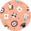 Tapis rond Kinder enfants Tapis pour chambre d'enfants Mix Animaux - Lavable - Antidérapant - 115 x 115 cm