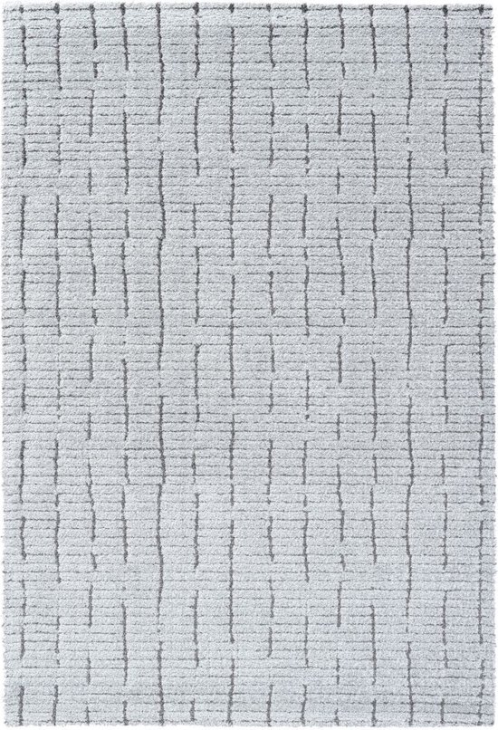 Tapis Rugsman Kyoto 014.0002.5131 - 160 x 230 cm - Grijs - Rectangulaire - Polyester - Salon - Géométrique - Shaggy - Poils longs, Moderne