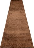 Tapiso Delhi Tapis de Couloir Marron à Poils Hauts Moelleux sur Mesure - 90x850