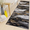Tapiso Maya Runner Tapis Grijs Zwart Couloir Moderne Salon Couloir Taille - 80x1400