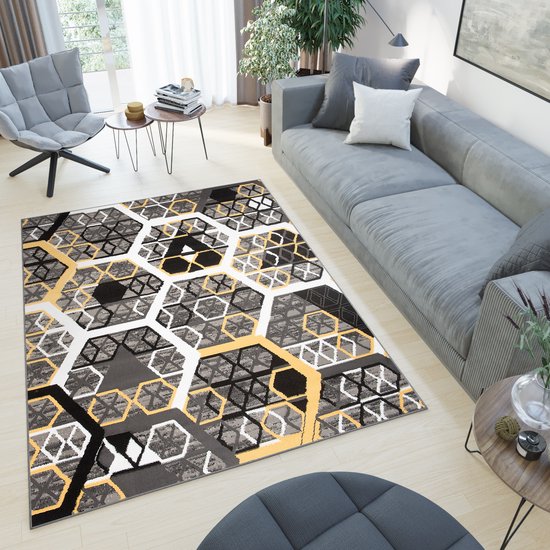 Tapiso Tapis Atena Grijs Blauw Zwart Tapis Moderne Taille - 80x150