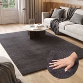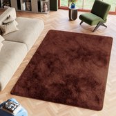 Tapiso Tapis câlin à poils longs marron antidérapant pour salon - 80 x 150 cm