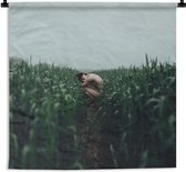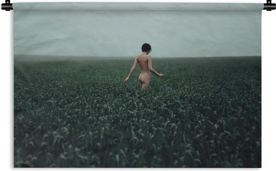 Tapisserie Abstrait Body - Femme marche dans les hautes herbes Tapisserie coton 150x100 cm - Tapisserie avec photo
