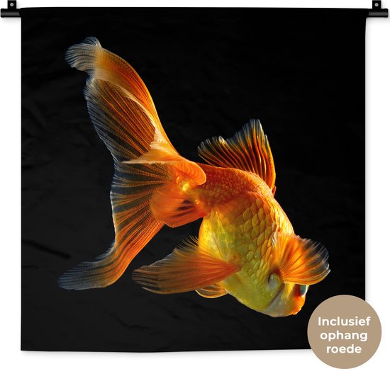 Tapisserie Animaux sur fond noir - Poisson rouge sur fond noir Tapisserie coton 60x60 cm - Tapisserie avec photo