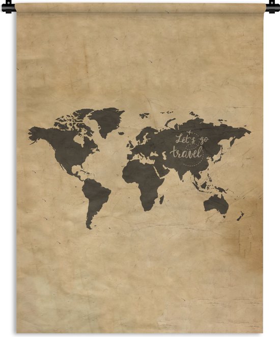 Tapisserie - Carte du Wereldkaart - Vintage - Citation - 120x160 cm - Tapisserie