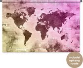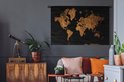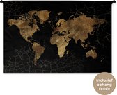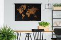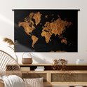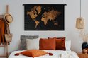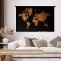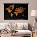Tapisserie Cartes du monde Illustrations de Noël - Carte du monde marron avec des lignes dorées sur fond noir Tapisserie en coton 120x80 cm - Tapisserie avec photo