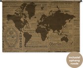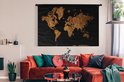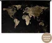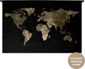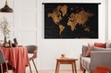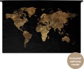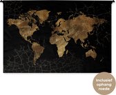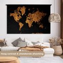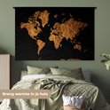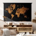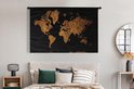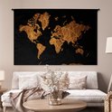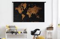 Tapisserie Cartes du monde Illustrations de Noël - Carte du monde marron avec des lignes dorées sur fond noir Tapisserie en coton 180x120 cm - Tapisserie avec photo