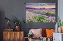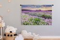Tapisserie Champs de lavande - Champ de Lavande avec un ciel de feu Tapisserie coton 150x100 cm - Tapisserie avec photo