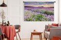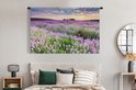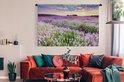 Tapisserie Champs de lavande - Champ de Lavande avec un ciel de feu Tapisserie coton 180x120 cm - Tapisserie avec photo XXL / Groot format !