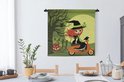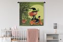 Tapisserie Illustration Vespa - Illustration d'une sorcière sur une Vespa Tapisserie coton 90x90 cm - Tapisserie avec photo