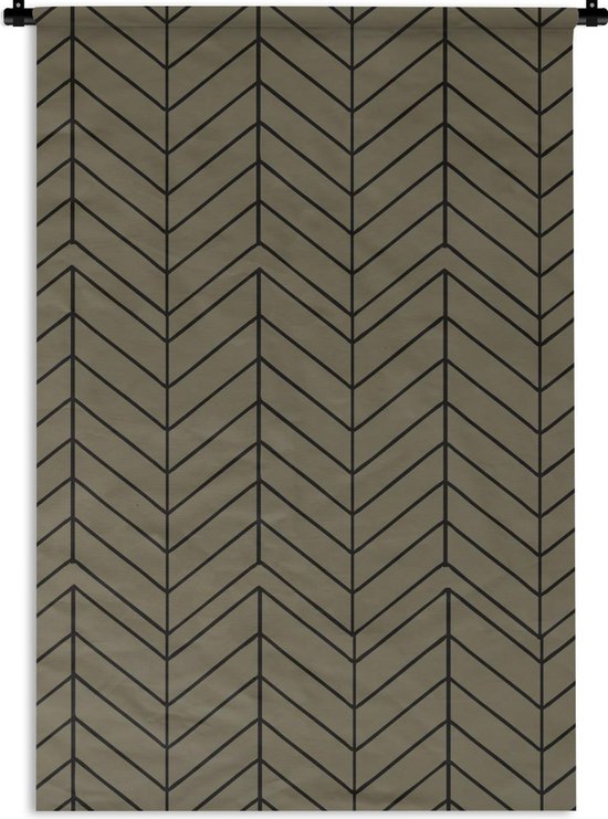Tapisserie Motif Luxe - Motif Luxe de lignes anguleuses et noires sur fond marron Tapisserie coton 120x180 cm - Tapisserie avec photo XXL / Groot format !