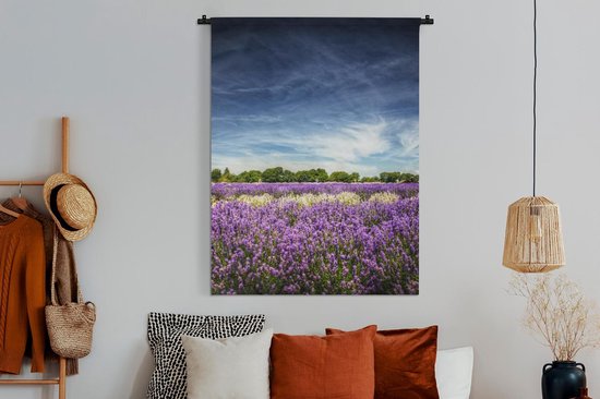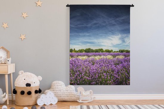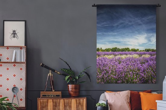 Tapisserie murale Lavande - Lavande violette et blanche en fleur dans un champ Tapisserie murale coton 120x160 cm - Tapisserie murale avec photo XXL / Groot format !