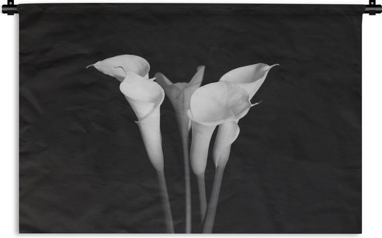 Tapisserie Plantes sur fond noir - Gros plan de fleurs de lys calla sur fond noir Tapisserie en coton 90x60 cm - Tapisserie avec photo