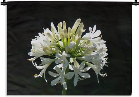 Tapisserie Plantes sur fond noir - Un agapanthe blanc en fleurs sur fond sombre Tapisserie en coton 90x67 cm - Tapisserie avec photo