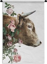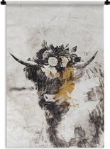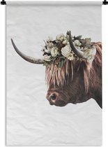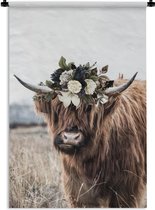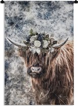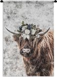 Tapisserie Scottish HighlanderIllustrations de Noël - Highlander écossais avec une couronne de fleurs Tapisserie coton 60x90 cm - Tapisserie avec photo