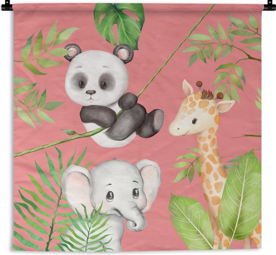Tapisserie - Tapisserie - Animaux de la Jungle - Enfant - Rose - 150x150 cm - Tapisserie