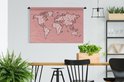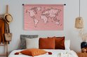 Tapisserie - Tapisserie - Carte du Wereldkaart - Rose - Lettres - 150x100 cm - Tapisserie