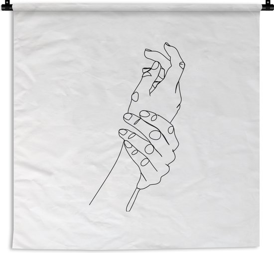 Tapisserie - Tapisserie - Mains - Zwart - Wit - Dessin au Line - 150x150 cm - Tapisserie