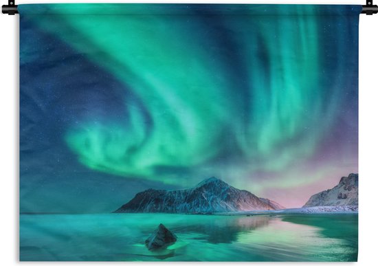 Tapisserie - Tissu mural - Aurores boréales - Étoiles - Paysage - Norvège - 60x45 cm - Tapisserie