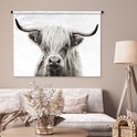 Tapisserie - Tissu mural - Highlander écossais - Animaux - Zwart - Wit - 150x112 cm - Tapisserie