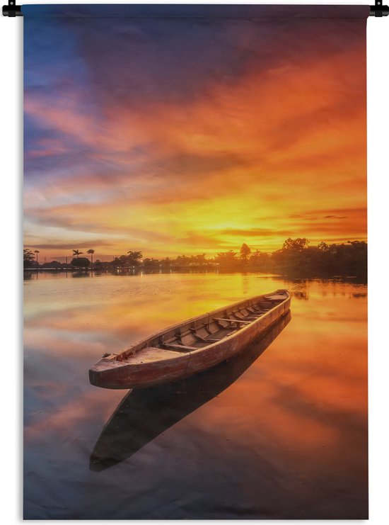 Tapisserie - Toile murale - Bateau - Water - Coucher de soleil - Oranje - Water - 60x90 cm - Tapisserie