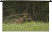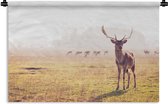 Tapisserie - Toile murale - Cerf - Herbe - Brouillard - 180x120 cm - Tapisserie