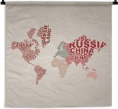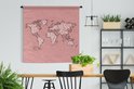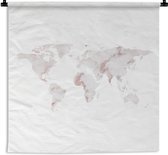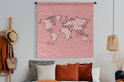 Tapisserie - Toile murale - Wereldkaart - Rose - Wit - Lettres - 150x150 cm - Tapisserie