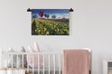 Tapisserie Tulipes - Montgolfières au-dessus d'un champ avec des tulipes Tapisserie coton 60x40 cm - Tapisserie avec photo
