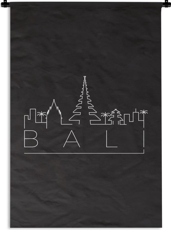 Tapisserie Villes du monde - Skyline Bali noir Tapisserie coton 60x90 cm - Tapisserie avec photo