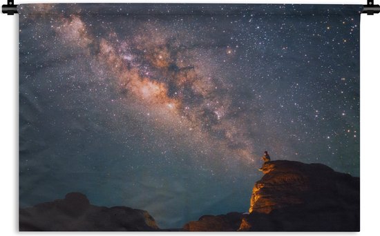 Tapisserie Voie lactée - Voie lactée au-dessus d'un paysage de montagne Tapisserie coton 180x120 cm - Tapisserie avec photo XXL / Groot format !