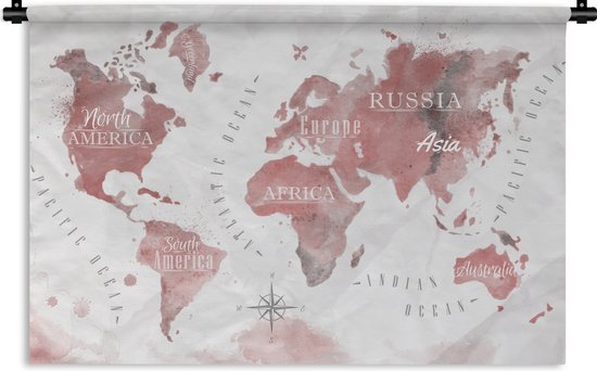 Tapisserie - Wereldkaart - Peinture - Rose - 150x100 cm - Tapisserie