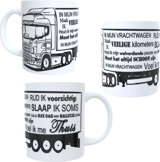 1 x imprimé - tasse à thé - tasse à café - texte - dicton - guote - dans mon camion - chauffeur - cabine - maison - kilomètres