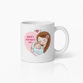 Tasse « Happy fête des Mères » 330 ml – Cadeau idéal pour Maman, pour la fête des Mères et pour des moments spéciaux.