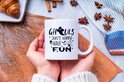 Cette tasse en céramique blanche comporte le texte "Les goules veulent juste s'amuser" et est imprimée avec des encres écologiques durables qui peuvent être utilisées sans danger à des températures élevées, ce qui rend ce produit lavable au micro-ondes et au lave-vaisselle.
