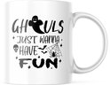 Tasse d'Halloween avec texte : Les goules veulent juste s'amuser | Décoration Halloween | Cadeaux drôles | Tasse de café | Gobelet à café | Tasse à thé | Tasse de thé