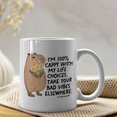 Tasse Creasowl® « Je suis 100 % Capybara avec mes choix de Life » – Tasse à café Witte en céramique 330 ml – Citation drôle de Capybara – Tasse positive et humoristique – Cadeau pour amis, famille et amoureux des animaux