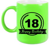 Tasse / tasse cadeau Happy anniversaire 30 ans avec fanion - 330 ml - vert fluo - cadeau d'anniversaire