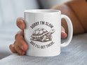 Savourez votre café avec cette tasse humoristique « Désolé, je suis lent » Tortue. Le Perfect pour les amoureux des tortues ou pour tous ceux qui aiment les bonnes blagues ! * Le design présente une jolie illustration de tortue.* Avec le texte « Désolé, je suis lent, mais j'y arriverai.* Idéal pour le café, le thé ou autres boissons chaudes.* Une tasse amusante et fonctionnelle à déguster.* Un cadeau unique pour toute occasion.