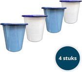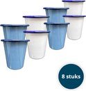 Tasses émaillées - Mugs émaillés - Services de table émaillée - Wit et vieux bleu - 8 pièces