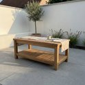 Faites l'expérience de l'élégance et de la fonctionnalité avec notre table basse de Jardin en teck, équipée d'une étagère inférieure pratique. Avec son design minimaliste et ses dimensions de 100x50x45 cm, cette table basse met en valeur la beauté inégalée du bois de teck des plantations. La palette de couleurs naturelles du teak améliore l'apparence et la sensation naturelles, faisant de cette table un ajout subtil mais frappant à n'importe quel jardin.