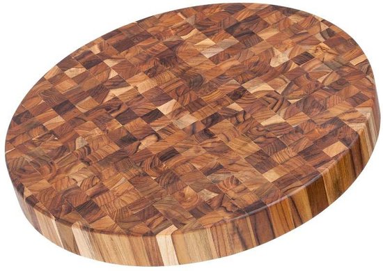Bloc à Heavy robuste en bois de bout massif . Ilsn'abîme pas tes couteaux et résister aux tâches de hachage et de coupe les plus exigeantes dans la cuisine . De couleur et de texture brillantes et une finition parfaite, vous les utilisez élégamment à la table lors de barbecues. Les planches à découper professionnelles de Teakhaus sont fabriquées en teck certifié FSC, un type de bois principalement utilisé pour les meubles de jardin et dans la construction navale en raison de sa stabilité et de ses propriétés résistant à l'humidité. C'est pourquoi le teck est un type de bois idéal à utiliser dans la cuisine. Le bois contient naturellement beaucoup d'huile et nécessite peu d'entretien.