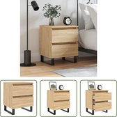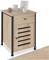La table de chevet Waterford se distingue par sa combinaison de bois chaleureux et d'acier froid. L'étagère réglable, le tiroir et le compartiment de la porte offrent de nombreuses possibilités de rangement. La construction compacte doit sa bonne stabilité et sa capacité de charge élevée au panneau de particules solide, au cadre robuste et aux pieds en plastique réglables en hauteur. Les détails charmants sont le grain fin et l'aspect à lattes de la porte magnétique, qui donnent au petit meuble un grand caractère - fonctionnel et chic : la table de chevet polyvalente Waterford.
