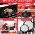 Facile à utiliser, sur induction. Agréable dans le tiroir, le koelkast, le four car la poignée peut être retirée.
