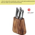 "Quoi que vous souhaitiez cuisiner, ce fantastique set de 6 couteaux vous comblera. Trancher du pain croustillant, découper du poisson en filets, épépiner des piments, couper des fruits et émincer des légumes sans effort - il y a un couteau de qualité supérieure pour chaque type de préparation, le tout rangé dans un magnifique bloc de bois d'acacia provenant d'une source responsable. Alors qu'attendez-vous ? A vos couteaux !" Jamie Oliver