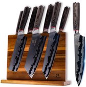 C'est un bel ensemble. Dans la vraie vie encore plus belle que sur la photo! Un véritable accroche-regard dans la cuisine. Les couteaux sont tranchants comme des rasoirs et font très bien ce qu’ils sont censés faire. J'aurais dû acheter ce set bien plus tôt, c'est tout simplement un plaisir de travailler avec ces magnifiques couteaux. Le couteau de chef, le couteau Santoku, le couteau à découper, le couteau à pain, le couteau d'office et le couteau universel sont tous également utiles et bons. Si vous n'avez pas encore cet ensemble, je vous dirais de l'acquérir. C'est une dépense, mais cela en vaut la peine.