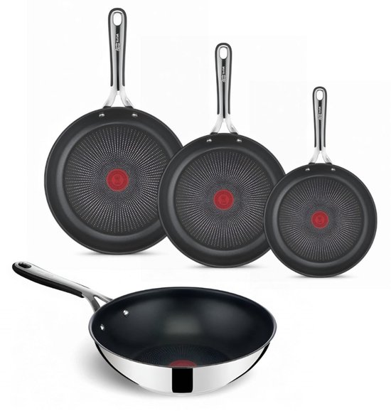 Tefal Jamie Oliver Kitchen Essentials Pan Set - Poêles à frire Ø20/24/28cm - Poêle Wok Ø28cm - Induction - Acier inoxydable