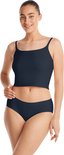 Ce hipster de la série Secrets renouvelée de Ten Cate a fière allure pour tout le monde! Les Secrets sont invisibles et donc idéaux sous une robe moulante. Les bords sont collés et ne remontent pas. Ce hipster bleu foncé descend à mi-chemin des fesses. Le hipster n'a pas d'étiquette de lavage irritante mais un joint de lavage imprimé et possède également un gousset en coton pour plus de confort. Faites-en l'expérience par vous-même !