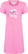 La chemise de nuit a un col rond et des manches courtes.