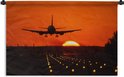 Tenture murale Avions - Silhouette d'un avion avant le coucher du soleil Tenture murale coton 150x100 cm - Tapisserie murale avec photo